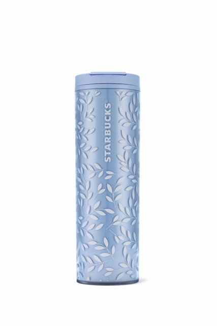 En skikkelig kul tumbler med et lyseblått design og hvite blomster dekorert på koppen. Koppen passer utmerket for både varme og kalde drikker og har en dobbel-vegg konstruksjon for å forhindre kondens.
